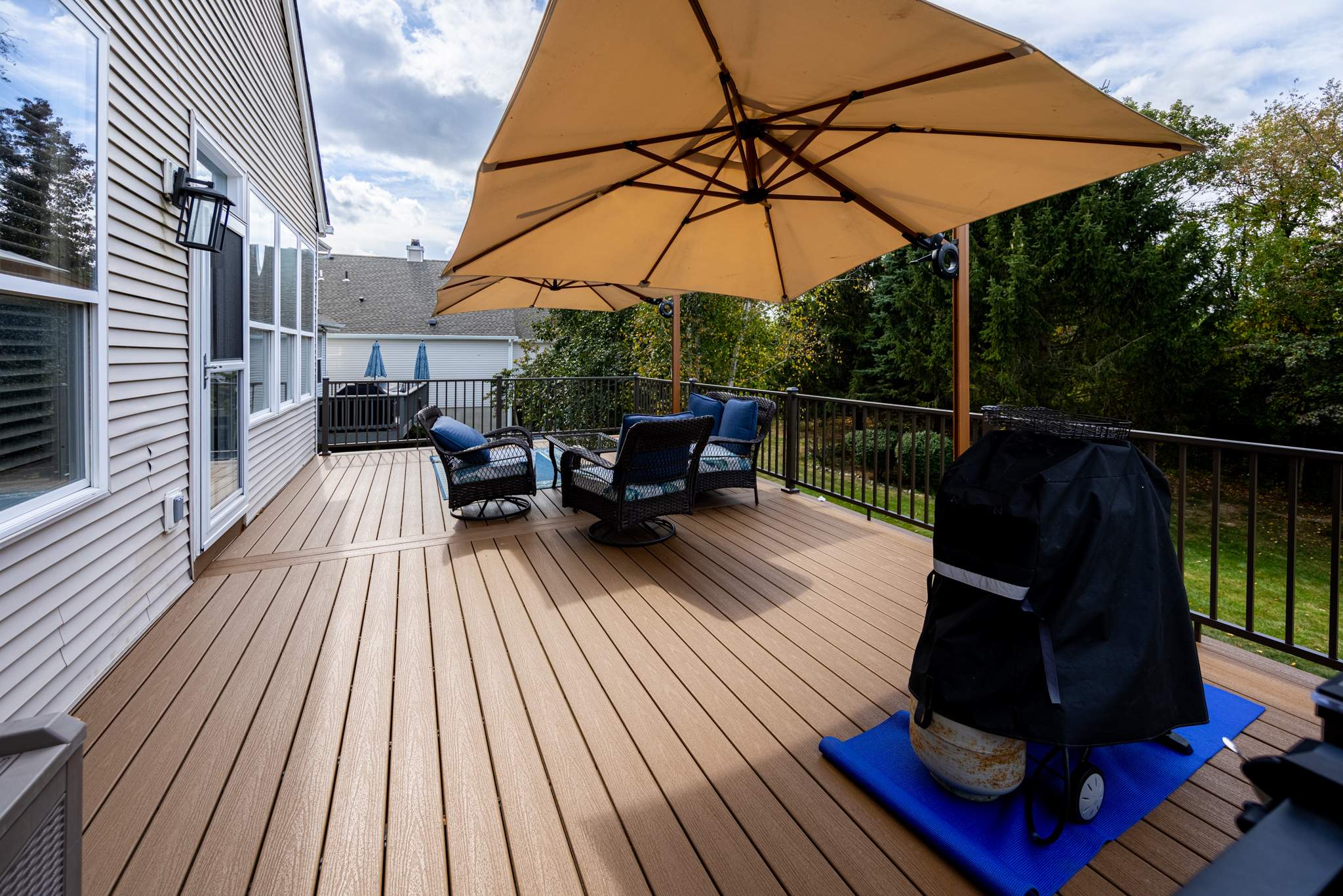 Beneath the surface, we installed the Trex RainEscape® under-deck water management system, which expertly channels rainwater away from the structure, protecting the substructure and creating a dry, functional space below. This intelligent drainage system allows the homeowners to make the most of every square foot of their property.