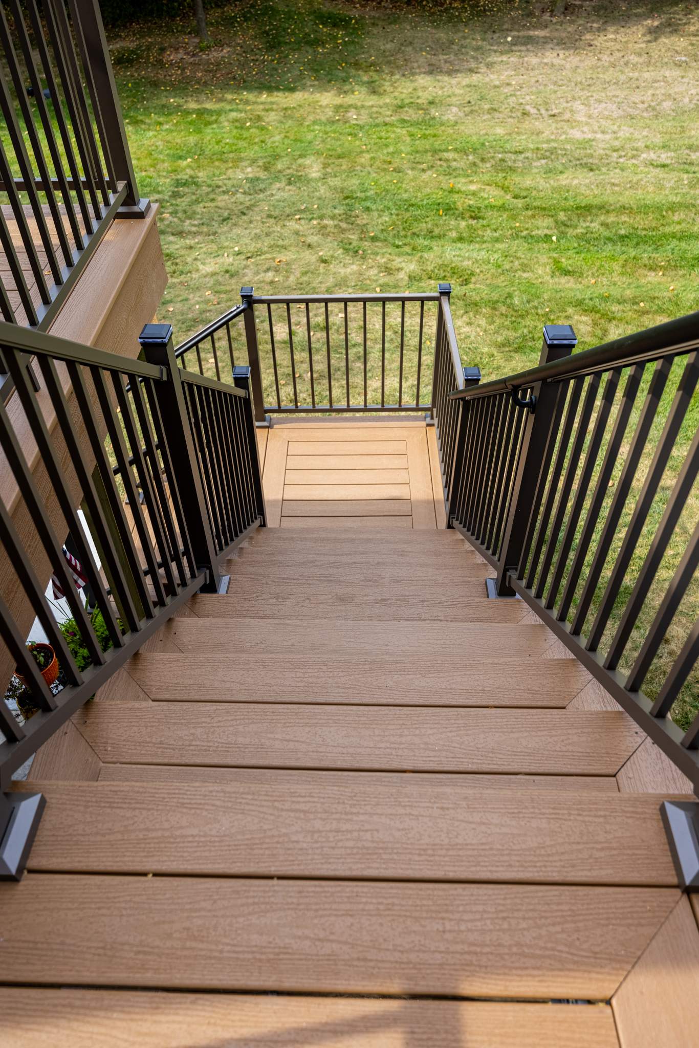 Soft, low-voltage LED lighting was strategically integrated throughout the deck and railings to create a warm, inviting ambiance for evening gatherings.